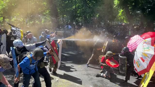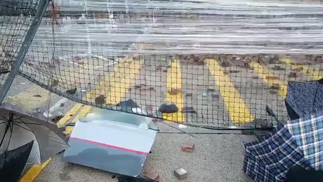 Street vendors sold different types of rubber ducks and protesters took along foot pumps to inflate items, which later formed a "duck fortress."