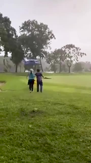 Ratchidapon Changsri, 35, was with three other caddies and four players as they braved the heavy rain in Bangkok, Thailand, on Thursday afternoon. 2025-09-21 14:21:42