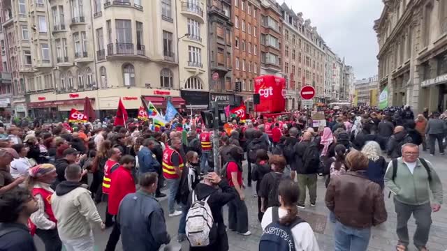 Footage captured by Tristan Sacha shows demonstrators rallying through the streets of Lille as part of a nationwide protest against budget cuts on September 18. 2025-09-21 14:40:19