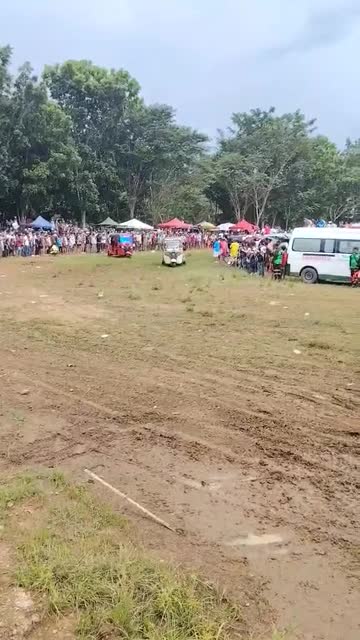 Footage captured by Nina Joy Abuloc shows several three-wheeler vehicles speeding around a muddy, winding track as they approach the finish line at the Dagayani Festival in Agusan del Norte, the Philippines.