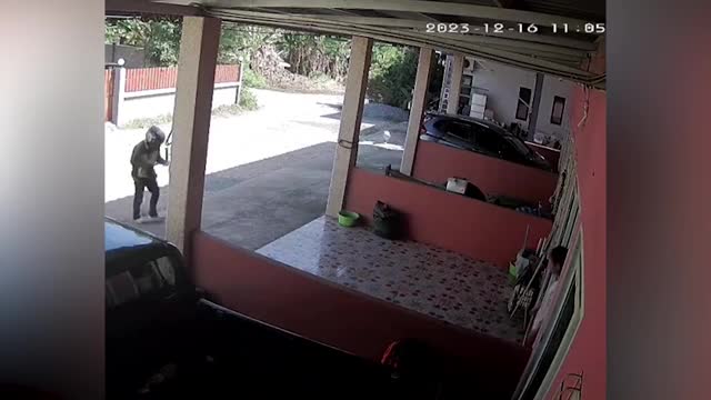 Footage shows the six-year-old goose named Palo noticing the postal officer as he enters Fon's house, prompting it to charge at the deliveryman. 2025-10-15 05:00:00