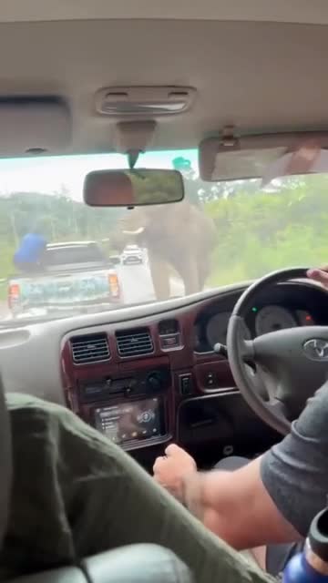 A family was driving along the motorway through the Pala-U forest when they saw the tusker emerge from the forest and amble onto the asphalt in Prachuap Khiri Khan, Thailand. 2025-10-15 13:20:46