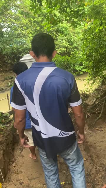 Joanne Teodoro and her family had to cross the broken walkway to transport her uncle's body on a funeral procession to the cemetery in Sorsogon, the Philippines. 2025-10-15 14:07:53