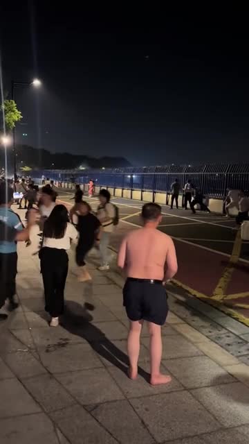 Footage shows a sudden swell smashing into a crowd gathered near the barrier, forcing them to quickly step back along the Qiantang River in Hangzhou. 2025-10-10 17:19:57