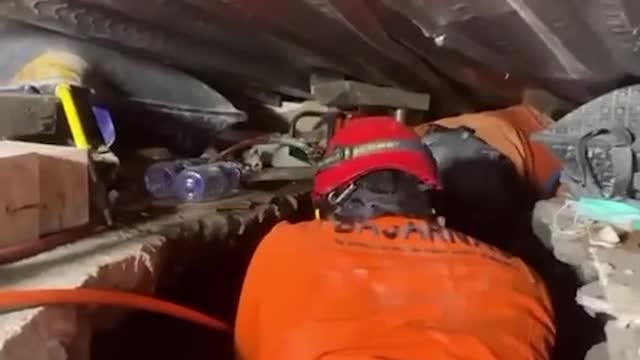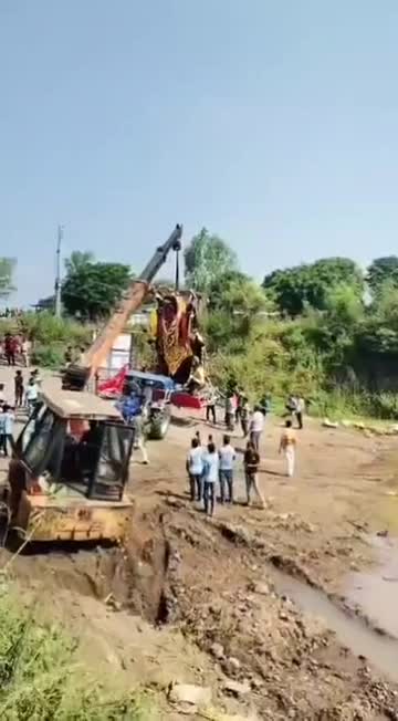 Footage shows locals surrounding the heavy equipment as it hoisted the massive religious structure, before the vehicle suddenly lost balance and overturned in Rajgarh, Madhya Pradesh. 2025-10-03 14:36:41