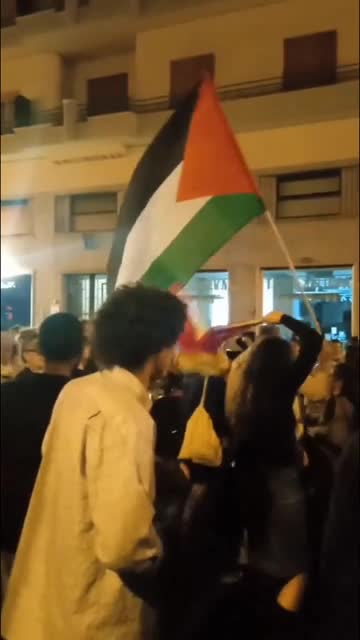 Footage shows activists gathered through the streets of Palermo around 10 pm local time on October 1, with some waving Palestinian flags during the nighttime demonstration. 2025-10-03 13:38:00