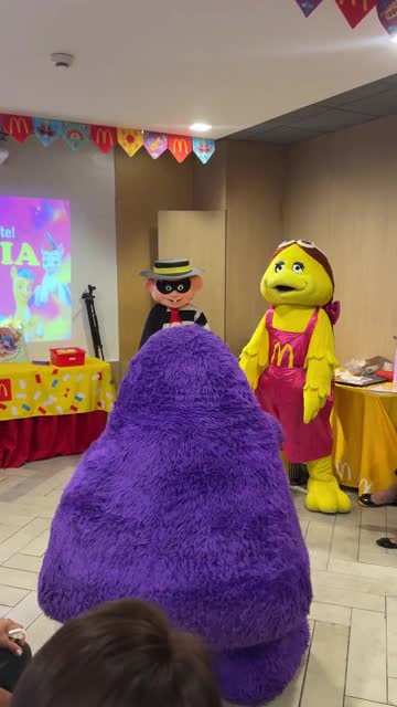 Grimace, one of the fast-food chain's mascots, was dancing in front of the crowd when he approached Jaan Ivar Bjorn Rile at the McDonald's Capitol Drive branch in Bataan, the Philippines. 2025-10-03 13:13:09
