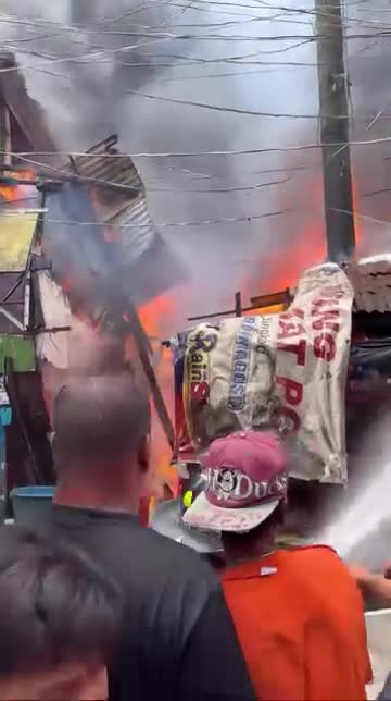 Residents pushed the volunteer firefighter to extinguish the burning homes as the officer focused on dousing unaffected buildings to contain the blaze at Aroma Barangay 105 in Manila, the Philippines. 2025-10-03 13:14:19