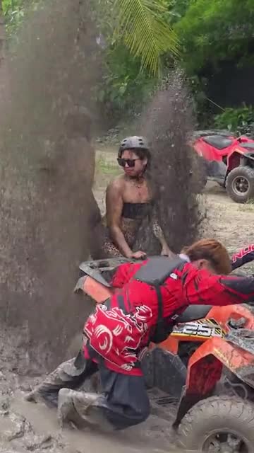 Tiw Wannaporn and her friend were assisting their tour leader in trying to remove the four-wheeler out of the quagmire in Chonburi, Thailand. 2025-10-03 13:19:56