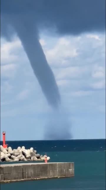 Waterspout tornado forms off the coast of Japan
