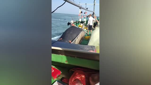 Footage shows the survivors clinging to their overturned vessel in the middle of the sea, most of the boat already submerged, in Hainan province. 2026-01-15 17:55:43