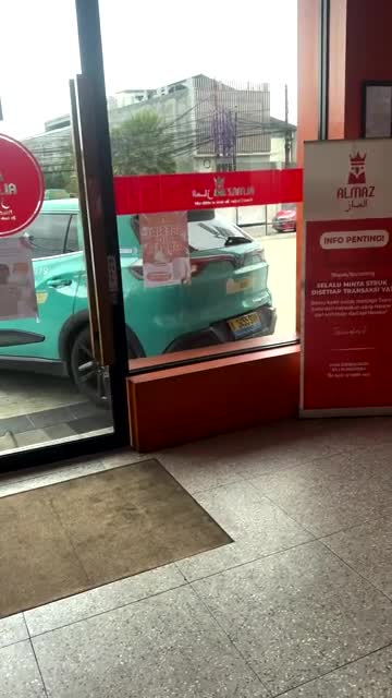 The teal-coloured vehicle was reversing in front of the Almaz Fried Chicken restaurant in Tangerang City, Banten, to chase a hit-and-run driver when it slammed into the storefront. 2026-01-15 17:43:12