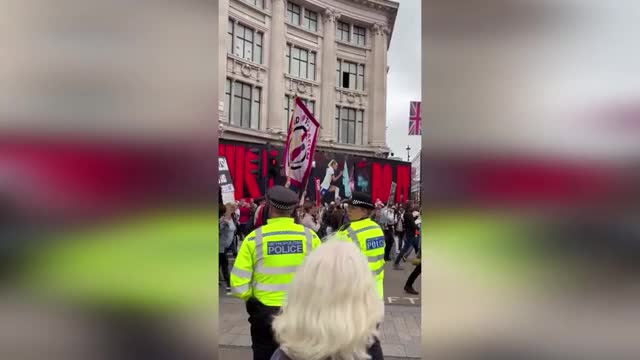 A coalition of over 50 organisations - including trade unions, environmental activists, anti-racism groups, and pro-Palestinian movements - assembled in central London to demonstrate against Trump's second official visit.