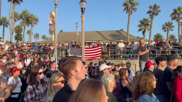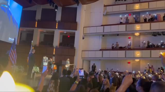 Footage shows a large crowd singing the national anthem together, many carrying American flags as they paid tribute to the slain Trump ally and conservative commentator. 2025-09-17 13:18:10