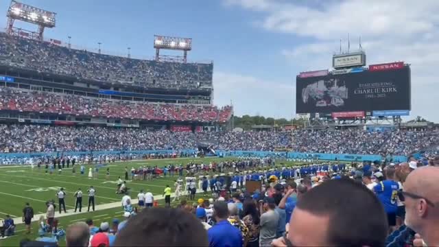 Footage shows the crowd at Nissan Stadium paying tribute to the conservative commentator and Trump supporter, as images and videos of him were displayed on the jumbotron. 2025-09-17 13:18:20