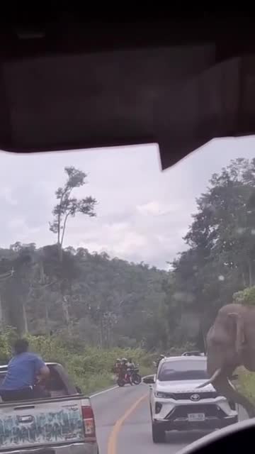 A family was driving along the motorway through Pala-U when they saw the tusker emerge from the forest and amble onto the asphalt in Prachuap Khiri Khan, Thailand. 2025-09-17 14:09:30