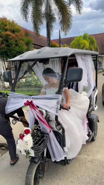 Footage shows Apple holding the throttle while organisers adjusted her gown, as her husband Justin sat behind her in Agusan del Sur, the Philippines. 2025-09-17 14:07:02