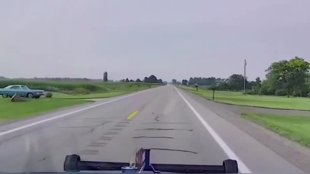 Dashcam footage shows the vehicle manoeuvring along the motorway when the hoofed creature suddenly sprinted across the asphalt, just inches away from the speeding four-wheeler in Michigan. 2025-09-17 13:02:48