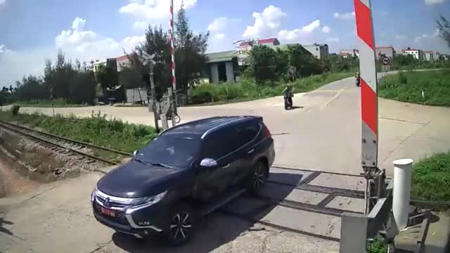 CCTV footage shows the vehicle ploughing through the automatic barriers at the Cam Giang - Cao Xa railway in Haiphong, on September 3. 2025-09-09 13:14:24