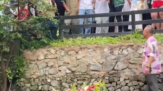 Footage captured by Aldrine Lapena shows the animal keeper gently rotating the sea creature against the wall in front of guests at Cebu Ocean Park in Cebu, the Philippines. 2025-09-09 13:53:15