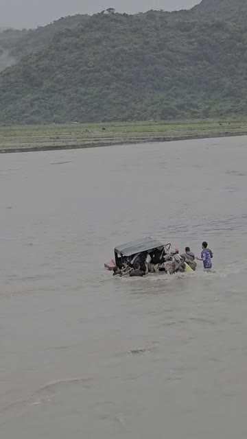 A group of thrill-seekers was on their way to Mount Pinatubo when their red off-road vehicle struggled against the strong currents in Tarlac, the Philippines. 2025-09-09 13:47:42