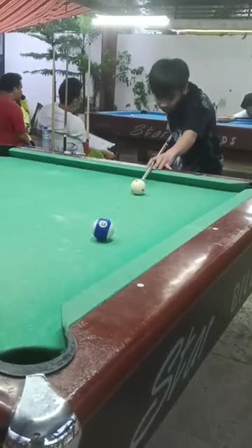 Footage captured by Kurt Axl Monteser shows his brother, John Wesley Monteser, aiming the white ball at the striped blue 10-ball in Laguna, the Philippines. 2025-09-09 13:48:14