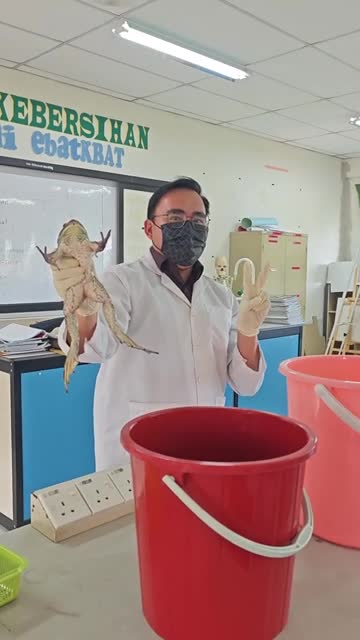 Biology teacher Shazrizal Shahmy had placed the live amphibian inside the red container when it suddenly jumped out in Kuala Lumpur, Malaysia. 2025-09-09 13:28:36