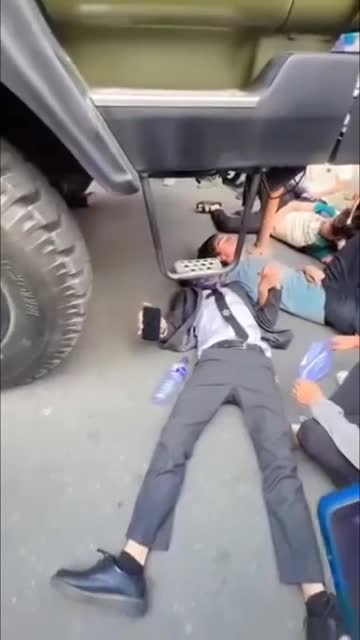 Footage shows demonstrators blocking a military truck in Kathmandu, where at least 14 people were killed in the clashes. Dozens more have been injured.