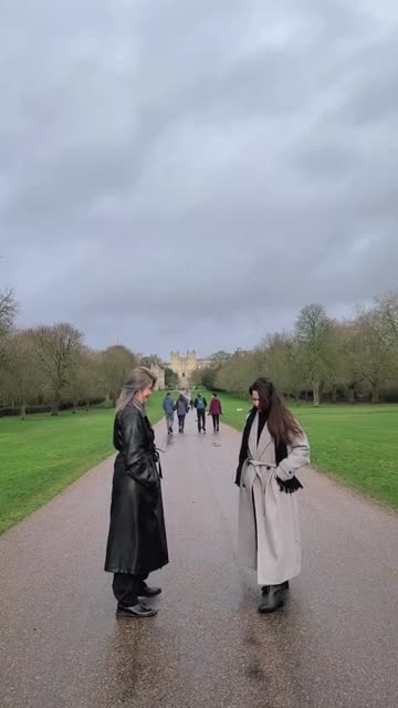 Khai Evangelista, dressed in a black coat, surprised her long-term partner, Claire Gana, with an engagement ring in the middle of the pathway at Windsor Castle. 2025-09-08 13:15:14