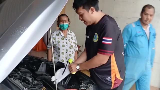 Staff were called to a roadside commercial building in Chonburi, Thailand, after motorist Natkrita Maneekaewngam heard the moggie crying in her vehicle on the morning of September 4. 2025-09-05 13:01:19