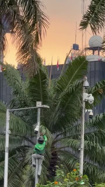 Footage shows the activist perched on a pole, smashing the surveillance equipment while the crowd cheers in Central Jakarta on August 30. 2025-09-05 13:08:55