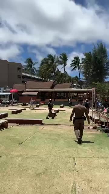 Footage shows officers blowing their whistles as they ordered holidaymakers to return to the shore of Kata Beach on tropical island Phuket. 2025-09-05 12:52:46