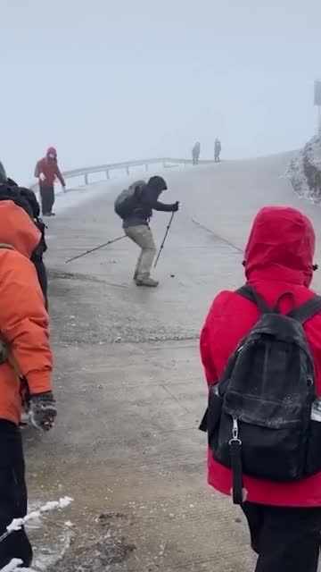 Footage captured by Mr Wei shows the holidaymaker skidding down the concrete hill, almost hitting other hikers at Jinfo Mountain in Chongqing, China. 2025-09-03 13:29:07