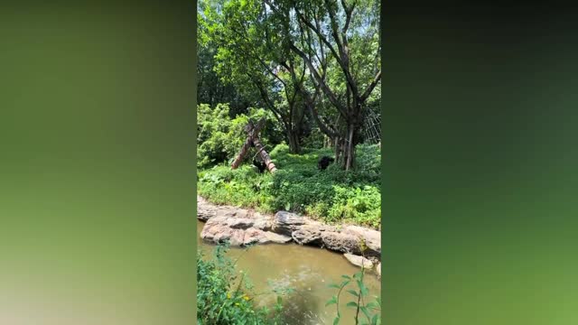 Footage captured by Ms Ma shows the primate striking the yellow-billed stork with the tree branch on the bank at Chimelong Safari Park in Guangdong, China. 2025-09-03 11:19:45