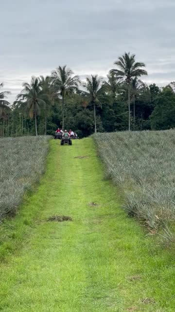 Bebing, wearing a red shirt, was riding the ATV when she veered off the pathway and crashed into a patch of planted pineapples in Cotabato, the Philippines. 2025-09-03 13:18:48