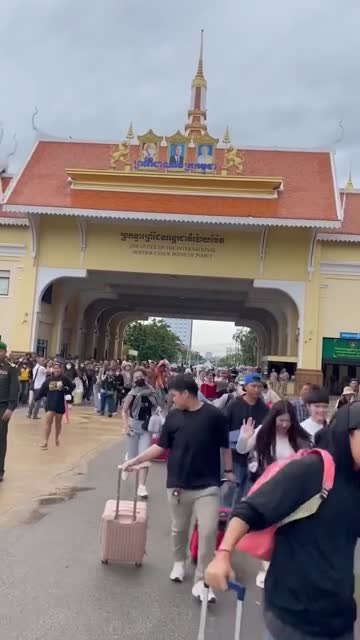 Footage shows frantic travellers dragging their suitcases as they rushed through the border checkpoint in Poipet, Cambodia, on June 14. 2025-06-18 15:31:40