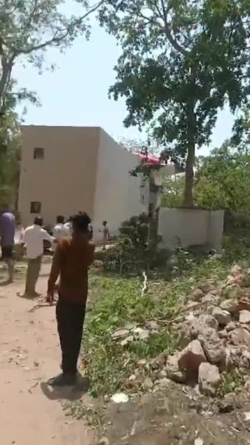 Air India plane crash wreckage hangs from side of home