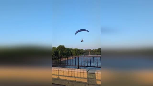 Footage captured by onlooker Dusty Howlett shows the powered paraglider sparking on impact before falling into the Red River in North Dakota on July 8. 2025-07-17 17:45:04
