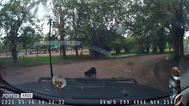 Dashcam footage shows the dark-furred big cat leaping onto the bonnet while the terrified passengers cowered inside the vehicle in Kanchanaburi, Thailand on May 16. 2025-07-17 20:40:39