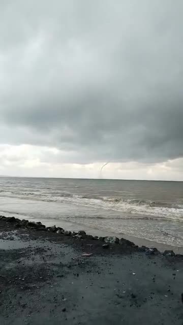 Footage shows the twister touching down at sea, emerging from a blanket of dark clouds over Tanah Bumbu Regency, South Kalimantan Province, on Monday, July 14. 2025-07-16 20:36:06