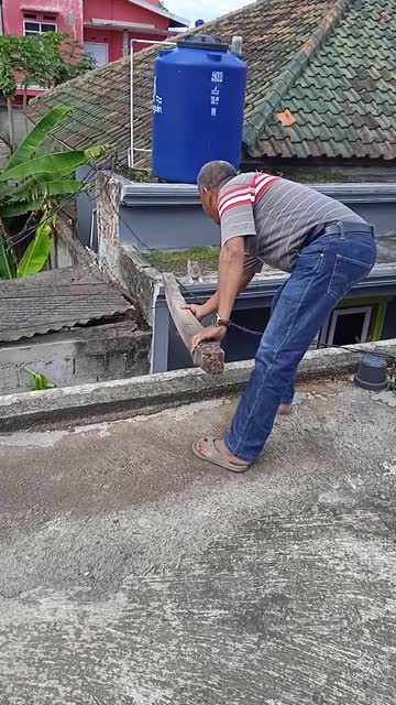 Nur Tanjung went to the top of their home to check why the dog had been barking and spotted the tabby named Bocil struggling to climb down in West Java, Indonesia. 2025-07-16 21:31:03