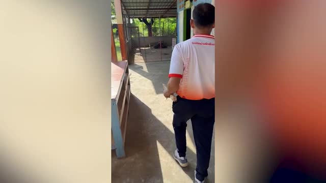Footage shows the instructor holding a stick which he used to pin the reptile down to the ground in Nong Bua Lam Phu province, Thailand, on June 2. 2025-06-11 03:00:00