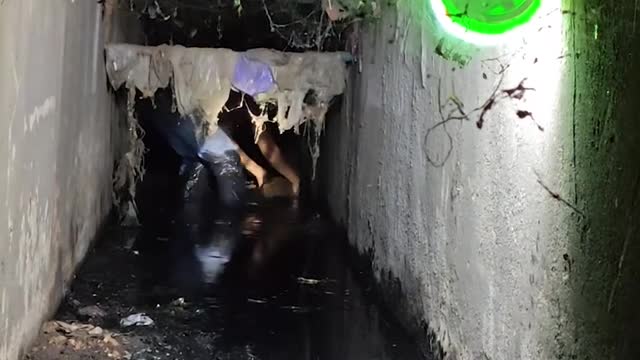 Concerned locals heard a faint bark from the filthy waterway, prompting them to call R9 Family, an animal rescue team, to retrieve the canine in Pyay. 2025-06-10 20:53:05
