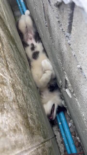 The pet owner heard a wailing sound from the side of her house and discovered one of her dogs wedged between exterior walls in Bangkok, Thailand. 2025-06-10 13:17:55
