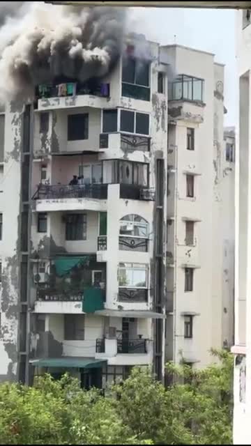 Footage shows desperate tenants trying to break down the glass doors of a sixth-floor balcony as the blaze raged in a flat in the capital New Delhi today, June 10. 2025-06-10 14:19:37