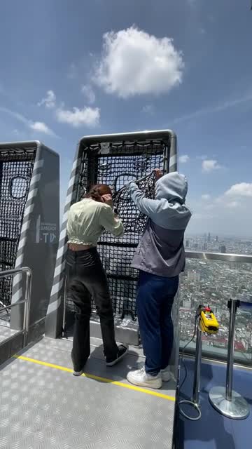The machine has been rigged up to the outside of the Mahanakhon Tower - the tallest building in Thailand - for visitors to test their head for heights. 2025-06-10 13:00:09