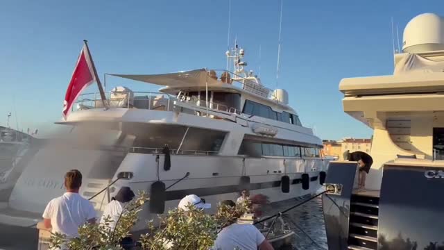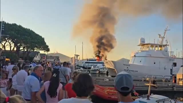 Footage shows the burning 135ft Sea Lady II as holidaymakers scramble around the marina in Saint-Tropez on Thursday evening, July 10. 2025-07-14 16:39:50