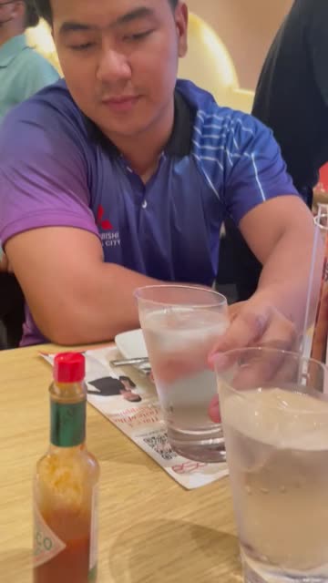 Footage captured by Jomae Carlos shows his friend, Jemuel Rabano, holding the slanted glass at Mesa Restaurant in Manila, the Philippines. 2025-07-14 17:48:26