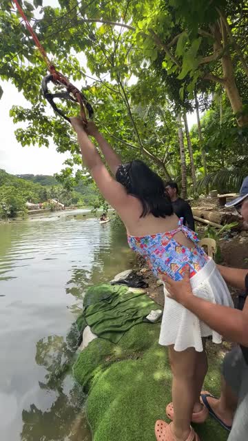Footage shows Diana Cabatingan being helped onto the swing by her father Romel, 55, before losing balance and veering sideways in Aklan, the Philippines. 2025-07-14 13:27:13