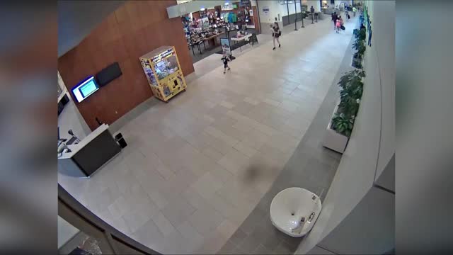 Surveillance footage shows the curious youngster inspecting the machine, filled with stuffed animals, at the Mason Community Centre on July 7. 2025-07-14 12:44:22